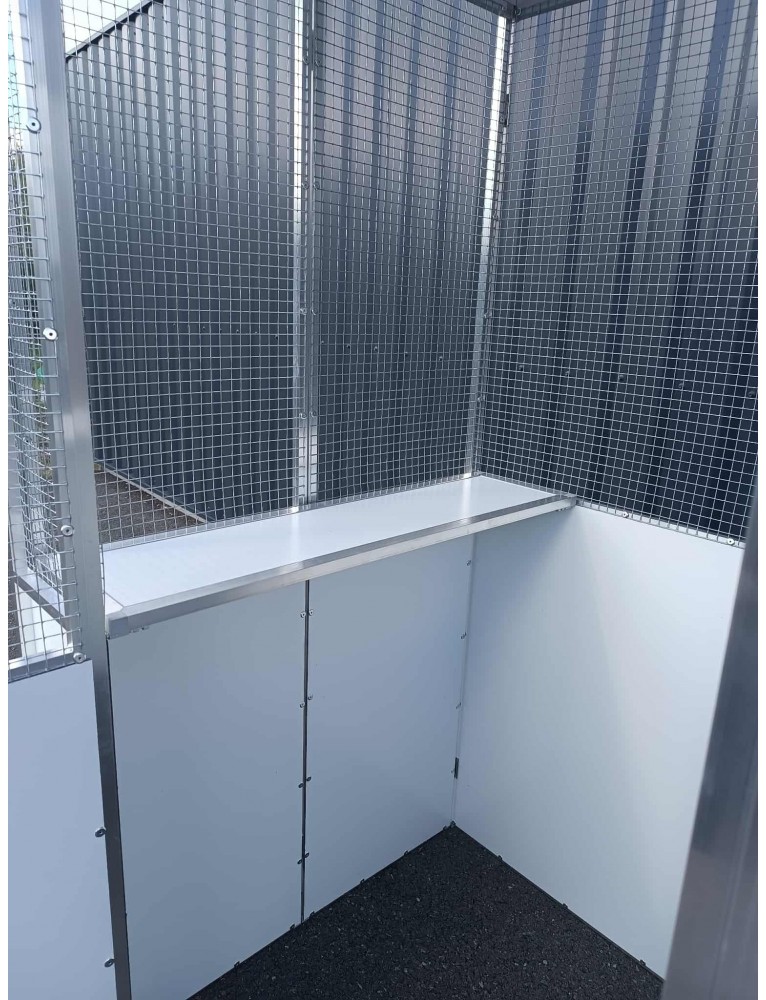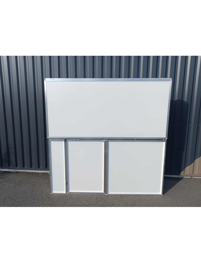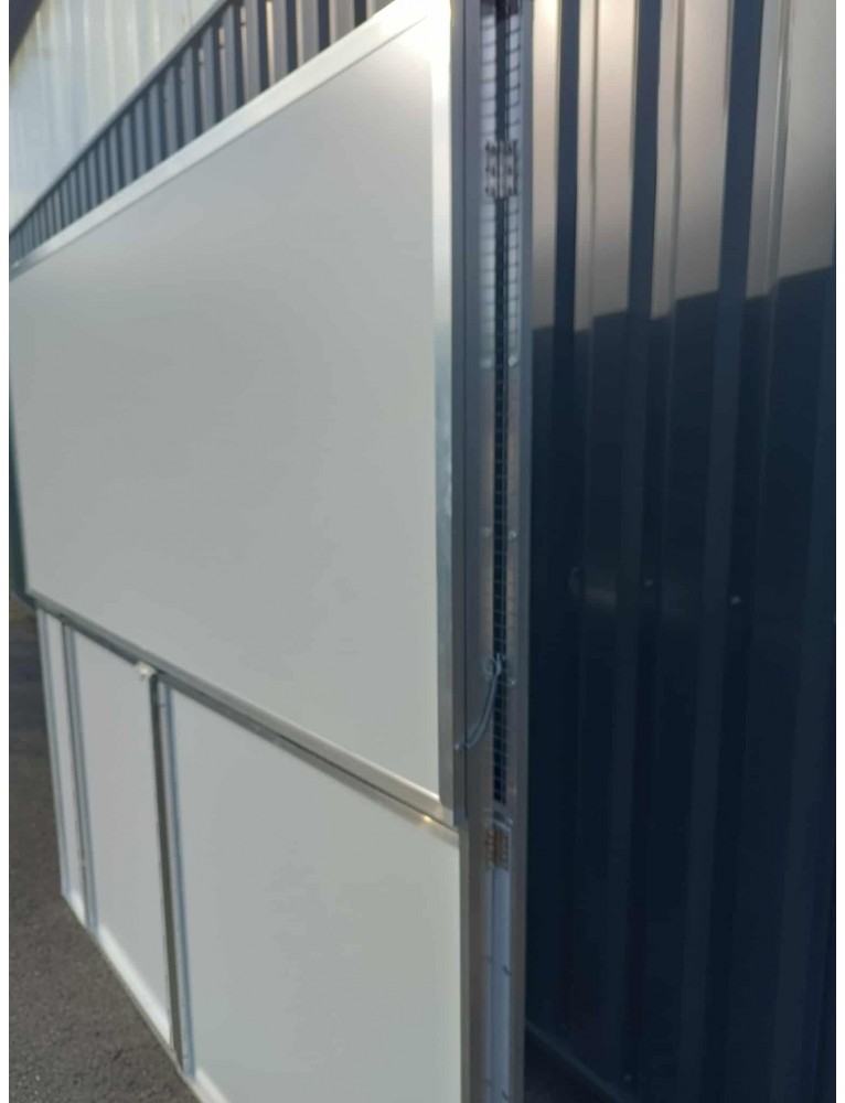 2 panneaux 2x0.50 (dibon et grillage) reliés par 9 charnières inox 60x30mm et 2 goupilles à billes de chaque côté